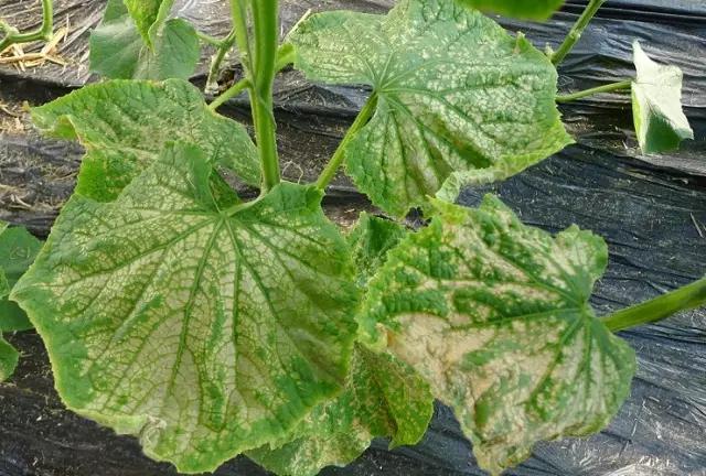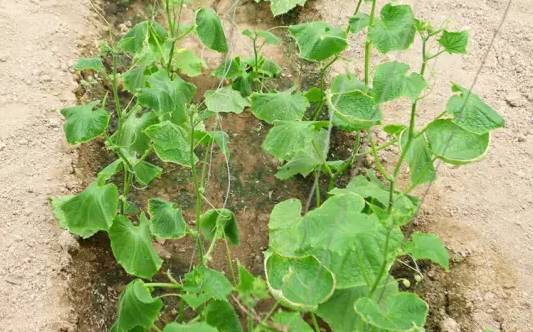 施肥的量和濃度一定要把握好。上圖就是由于底肥施用過量而導致黃瓜發(fā)生肥害,大面積萎蔫。葉面噴施時也要注意,高濃度的葉面肥會導致葉片細胞原生質失水,出現(xiàn)焦邊葉。
