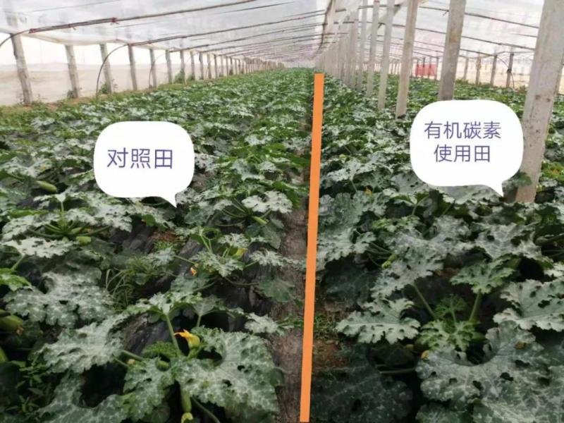 與對照田相比,施用愛地有機(jī)碳素的西葫蘆長勢旺,不徒長。根系發(fā)達(dá),須根繁多,超強(qiáng)吸收,抗病抗逆;莖稈挺直,植株高大,主蔓粗壯,側(cè)蔓稀少;葉片寬大,葉色濃綠,肥厚光滑,無病害斑;花朵碩大,花絲細(xì)長,授粉率高,色澤鮮艷;坐瓜率高,無畸形瓜,果型均勻,果色鮮亮。
