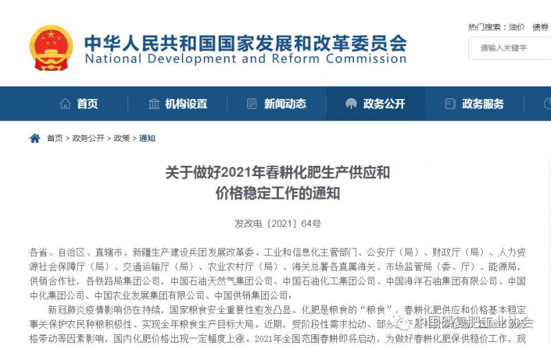 關(guān)于做好2021年春耕化肥生產(chǎn)供應(yīng)和價(jià)格穩(wěn)定工作的通知