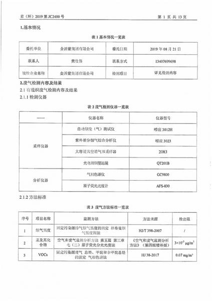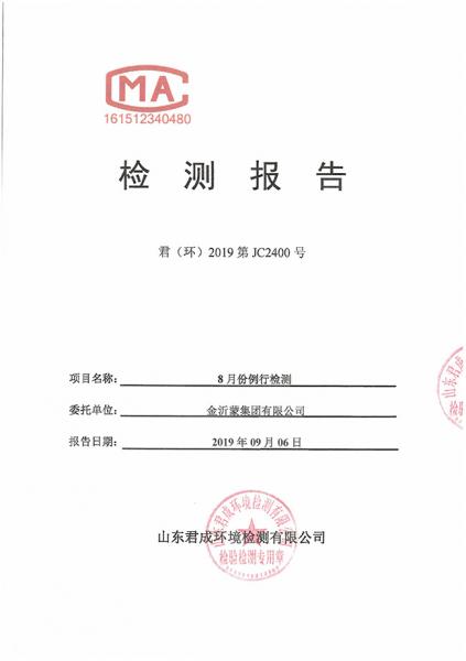 金沂蒙集團(tuán)8月第1次檢測(cè)報(bào)告
